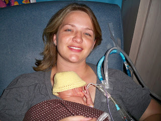 received some blood today because her level was low and she had been requiring a little more oxygen in the last few days. She looks like a little tomato when she gets the blood but it is a good look compared to her pale little self.